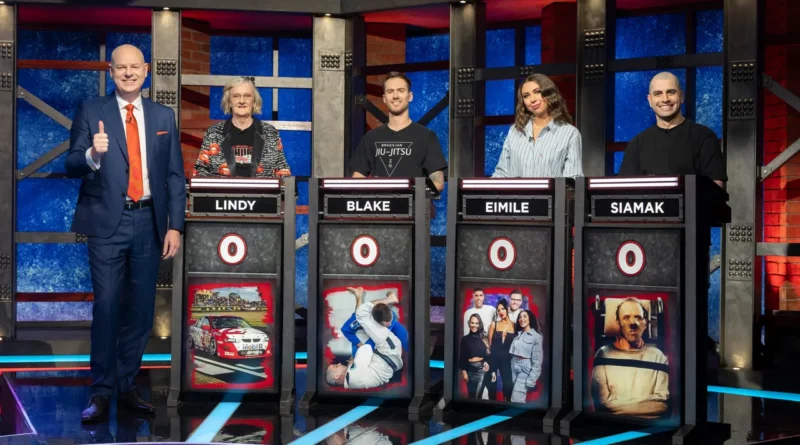 Tom Gleeson is besieged by another four contestants with eclectic expert subjects: Lindy with the Holden Racing Team, Brazilian Jiu-Jitsu fan Blake, Geordie Shore lover Eimile and Siamak, who’s lotioned-up with Silence of the Lambs!